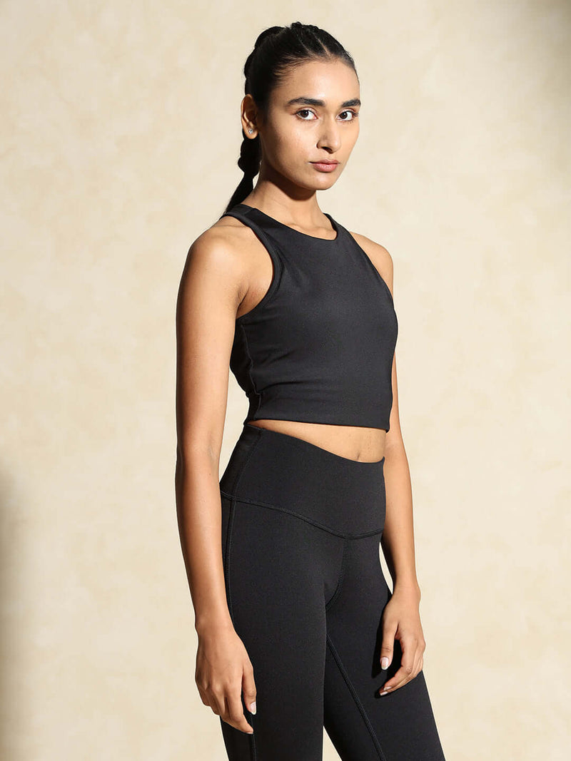 Keyhole Back Crop Top with Clasp Black
